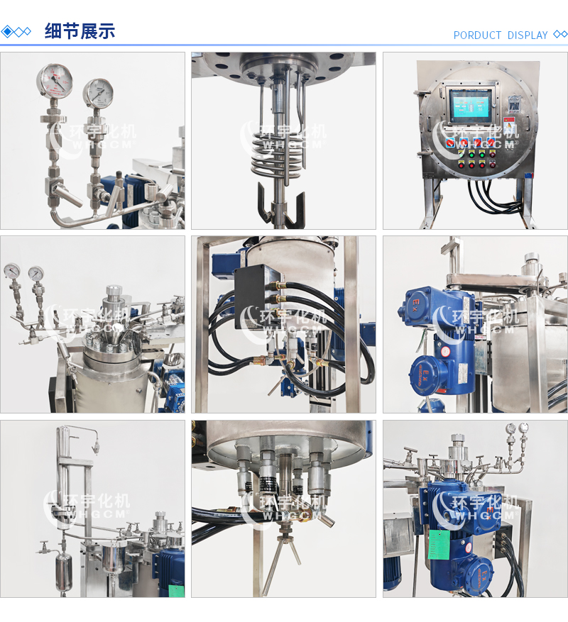 其他附件 如果用戶在釜蓋、釜體開口、內(nèi)部結(jié)構(gòu)、壓力高低、攪拌槳葉、及增加其他輔助裝置(如冷凝回流裝置、冷凝器、恒壓加料罐、接收裝置)等有特殊要求,可完全按用戶的要求加工制造
