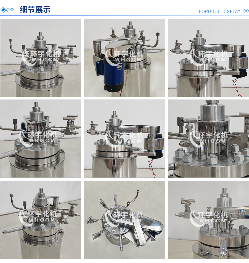 其他附件 如果用戶在釜蓋、釜體開口、內(nèi)部結(jié)構(gòu)、壓力高低、攪拌槳葉、及增加其他輔助裝置(如冷凝回流裝置、冷凝器、恒壓加料罐、接收裝置)等有特殊要求,可完全按用戶的要求加工制造