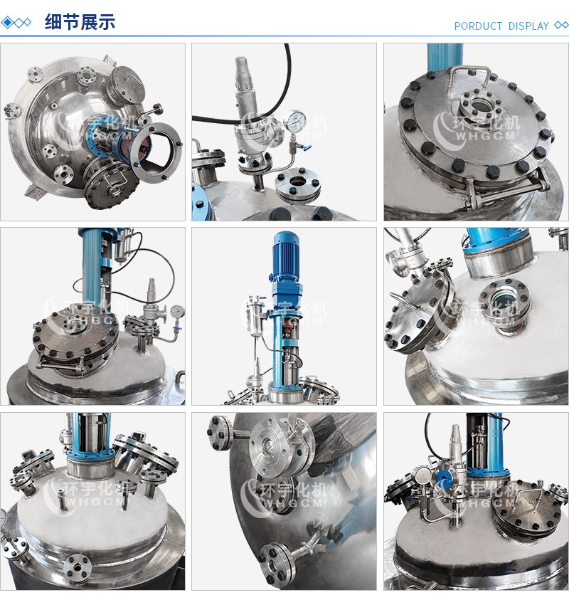其他附件 如果用戶在釜蓋、釜體開口、內(nèi)部結(jié)構(gòu)、壓力高低、攪拌槳葉、及增加其他輔助裝置(如冷凝回流裝置、冷凝器、恒壓加料罐、接收裝置)等有特殊要求,可完全按用戶的要求加工制造