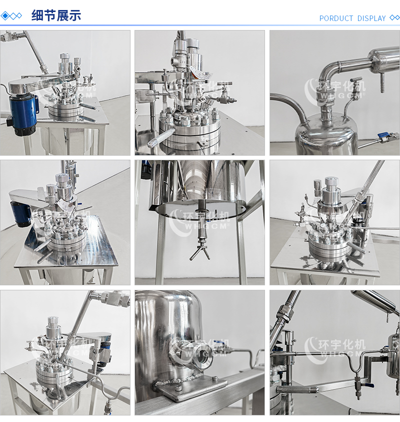 其他附件 如果用戶在釜蓋、釜體開口、內(nèi)部結(jié)構(gòu)、壓力高低、攪拌槳葉、及增加其他輔助裝置(如冷凝回流裝置、冷凝器、恒壓加料罐、接收裝置)等有特殊要求,可完全按用戶的要求加工制造