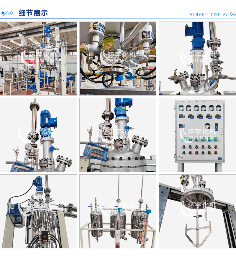 | 其他附件 | 如果用戶在釜蓋、釜體開口、內部結構、壓力高低、攪拌槳葉、及增加其他輔助裝置(如冷凝回流裝置、冷凝器、恒壓加料罐、接收裝置)等有特殊要求,可完全按用戶的要求加工制造 | ||||