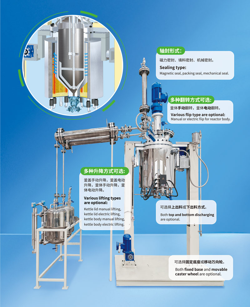 | 加熱方式 | 遠紅外電線加熱、油浴電加熱、夾套循環(huán)導熱油/蒸汽/熔鹽加熱 | ||||