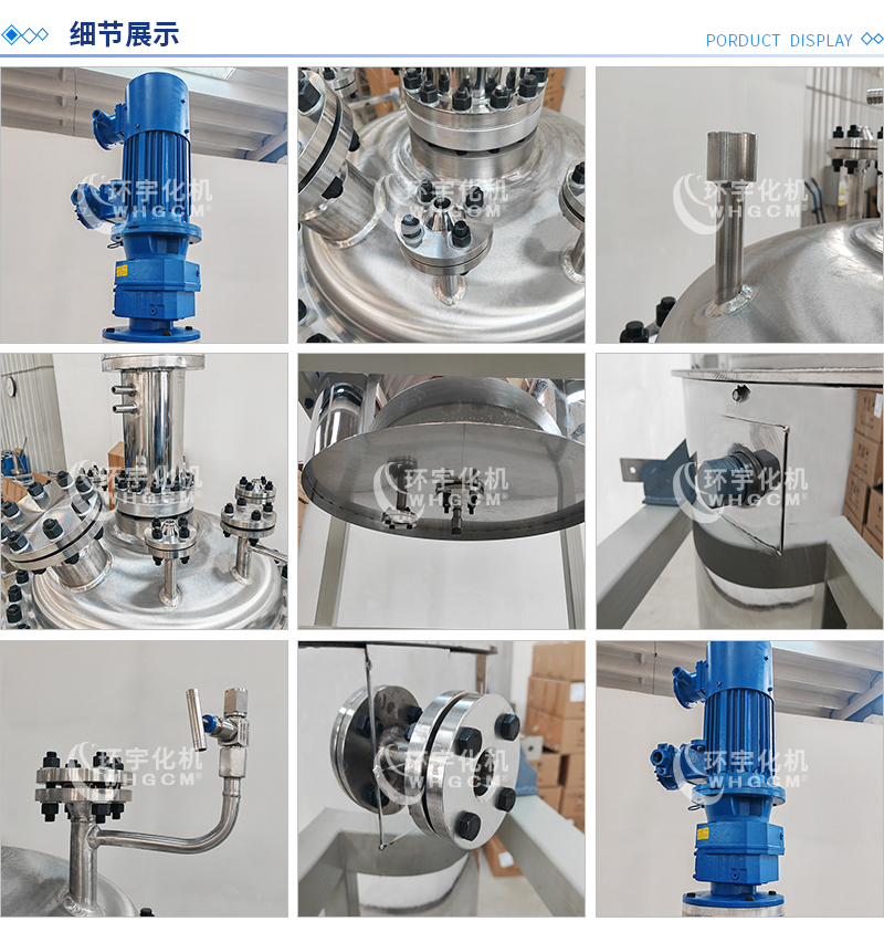 其他附件 如果用戶在釜蓋、釜體開口、內(nèi)部結(jié)構(gòu)、壓力高低、攪拌槳葉、及增加其他輔助裝置(如冷凝回流裝置、冷凝器、恒壓加料罐、接收裝置)等有特殊要求,可完全按用戶的要求加工制造