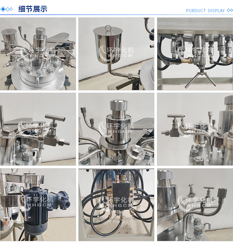 其他附件 如果用戶在釜蓋、釜體開口、內(nèi)部結(jié)構(gòu)、壓力高低、攪拌槳葉、及增加其他輔助裝置(如冷凝回流裝置、冷凝器、恒壓加料罐、接收裝置)等有特殊要求,可完全按用戶的要求加工制造